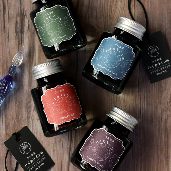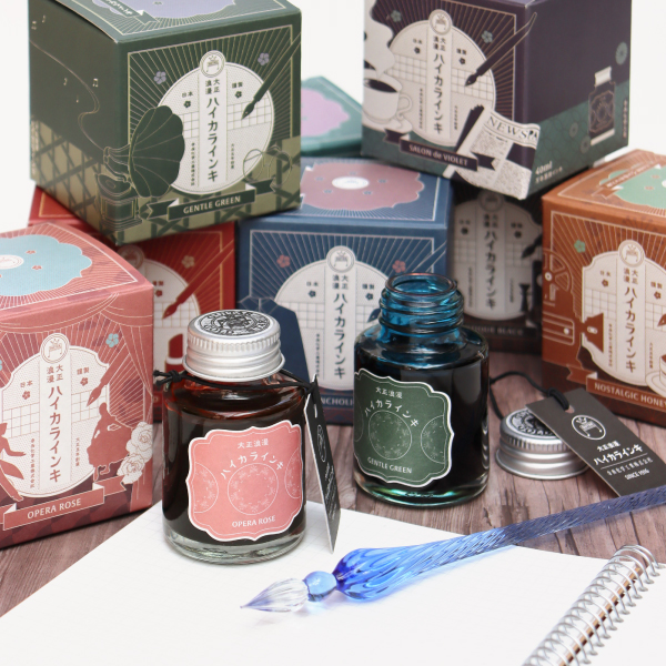 大正時代をモチーフにしたデザインと、レトロモダンな深みのある色合いが人気の万年筆インキです。