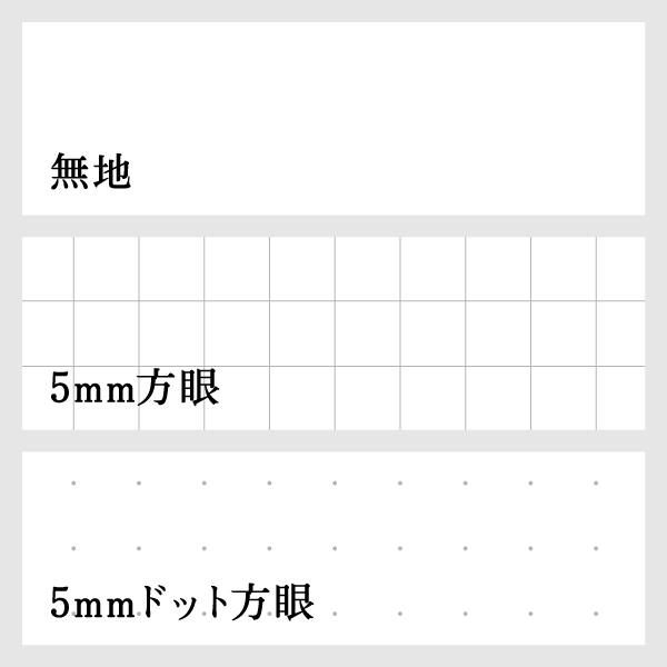 ●3タイプの用紙展開(無地・5mm方眼・5mmドット方眼)